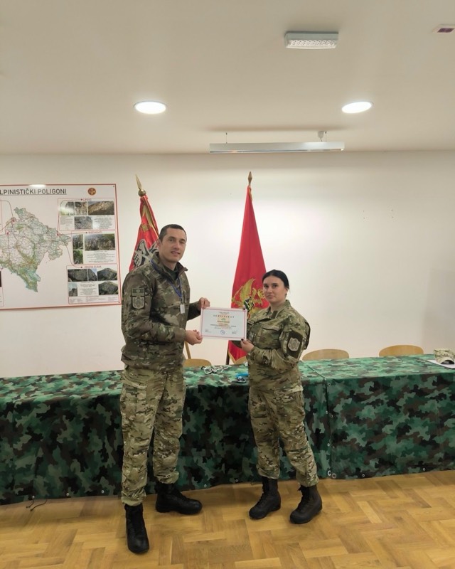 Pripadnica Prvog pješadijskog bataljona, desetarka Tea Idrizović, prva je žena u Vojsci Crne Gore koja je uspješno završila Međunarodni osnovni kurs planinskog ratovanja u zimskim i ljetnjim uslovima
